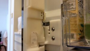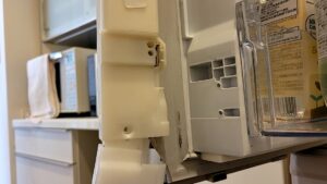 愛知県愛西市のお客様より三菱電機製冷蔵庫のドアにある仕切板が戻らないと、修理のご相談を頂きました。