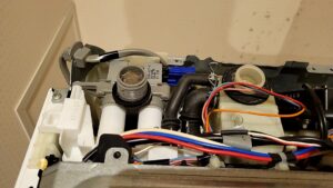 コントロール基板などを外して給水弁組立を取外しました。