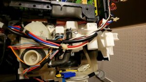 洗濯機本体を分解して破損した給水弁組立を取り外します。