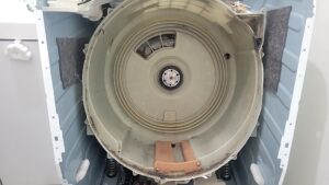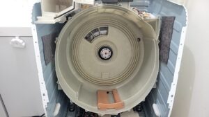 水洗いできる部品を本体より取り出した洗濯機の本体内部もご確認して頂きました。