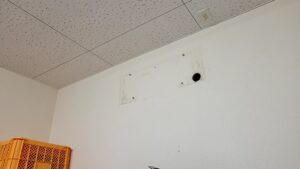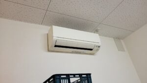 設置場所は倉庫で以前にエアコンを取り付けられていて、またエアコンを再度取り付けたとのこと。