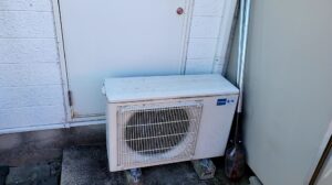 室外機も以前に取り付けていた室外機のベースがあり、そのベースをそのまま使わせて頂くことになりました。
